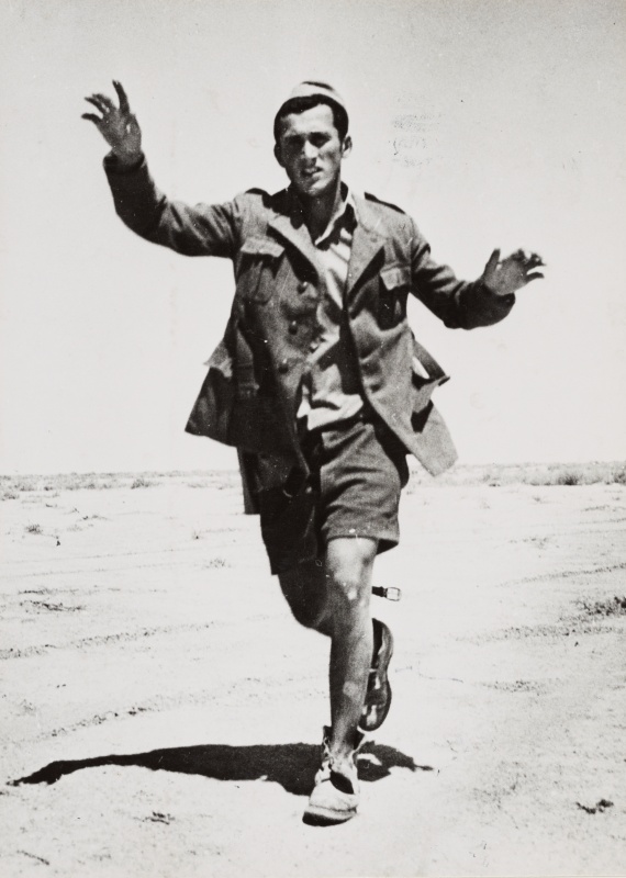 Un soldat italien, les mains en l’air, se rend aux Alliés en novembre 1942, lors…