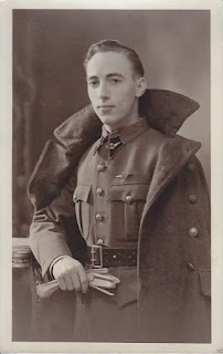 Légende photo : Pilote belge portant les ailes et les colliers du roi Albert vers…