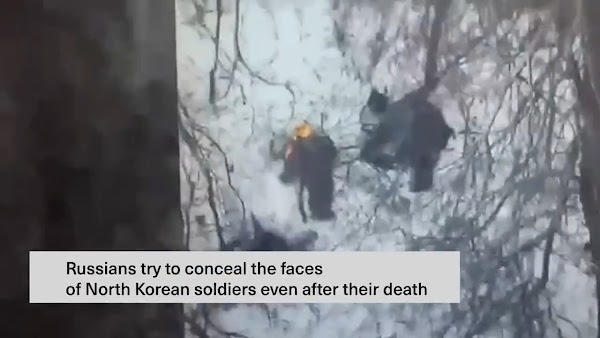 Des soldats nord-coréens tués après l’assaut des positions ukrainiennes, traduction arrêt sur image « Les Russes tentent de dissimuler les visages des soldats nord-coréens même après leur mort ». Nous voyons clairement la tête d’un soldat qui brûle dans la neige. A noter un détail tout aussi sordide, dans la vidéo les soldats Russes rigolent entre eux face à la mort des soldats nord-coréens pourtant venus se battre pour aider la Russie.