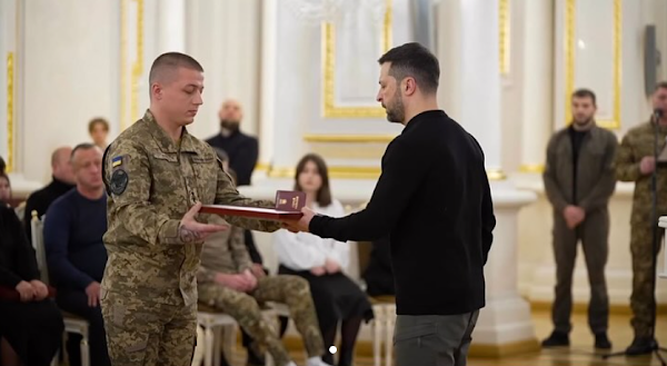 Le président ukrainien Volodymyr Zelensky a rencontré des guerriers ukrainiens et des proches de défenseurs tombés au combat dans la Salle Blanche (salle de cérémonie) du Palais Mariinsky (résidence officielle du président ukrainien) au lendemain de Noël, et leur a remis les plus hautes distinctions nationales.