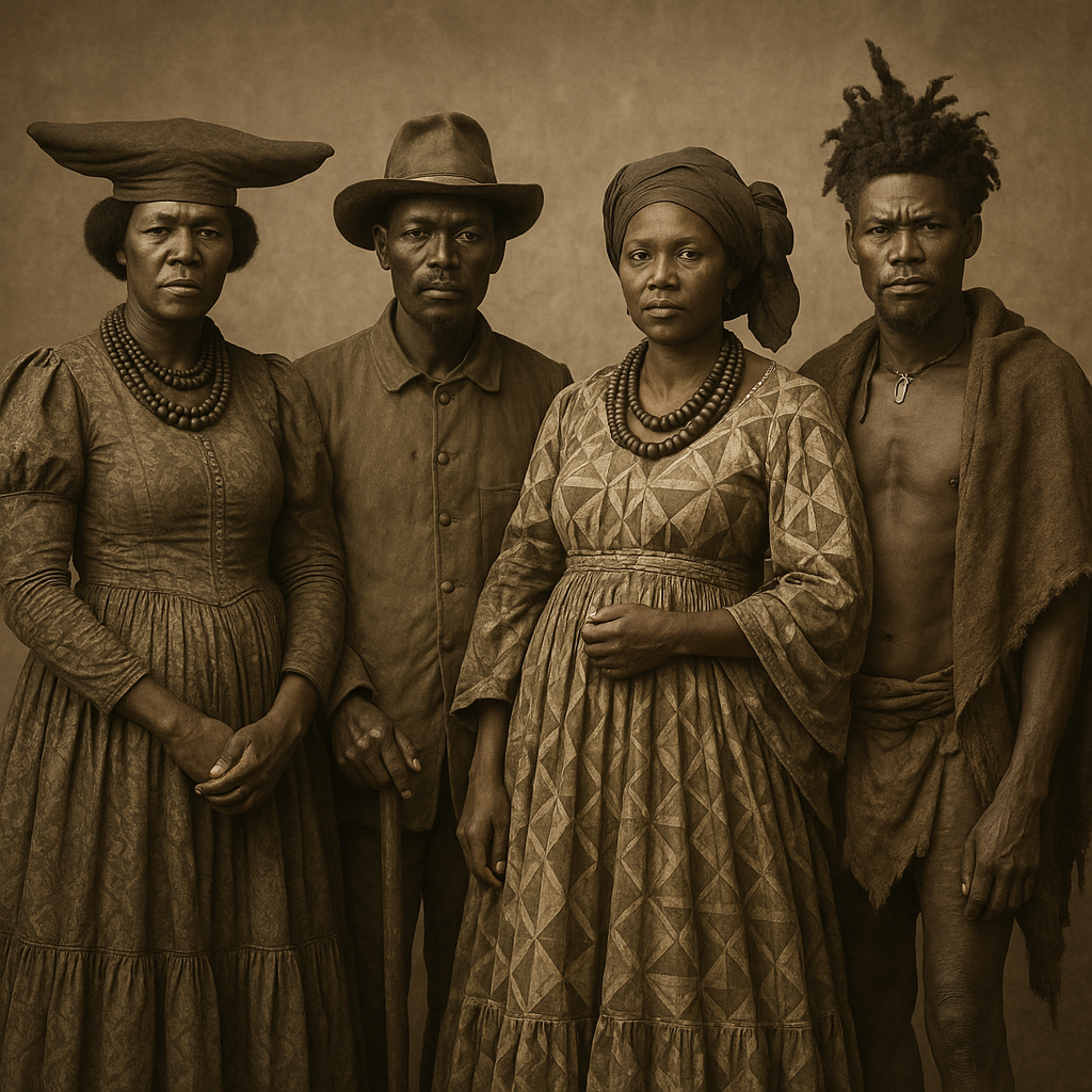Crédit photo entête : Héréos rescapés après avoir fui à travers l’aride désert d’Omaheke. Photo datant de 1907 (domaine public) – Seconde photo : IA