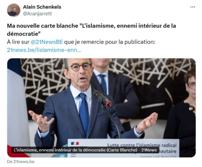 À l’heure où la sécurité européenne s’invite dans tous les débats, la menace de l’islamisme s’impose comme le principal défi pour la stabilité du continent. Son infiltration dans le tissu social, culturel et politique des États européens rend sa lutte plus complexe et urgente que jamais. Une carte blanche d’Alain Schenkels, chef d’entreprise.