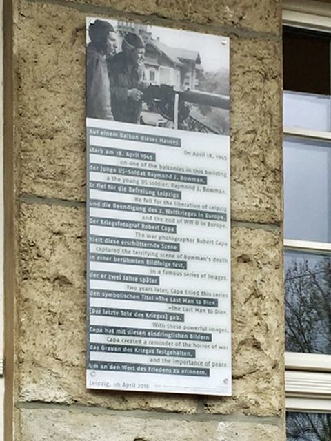 Le photographe de guerre Robert CAPA veut couvrir la libération de Leipzig, ville natale de Gerda Taro. Convaincu que la guerre est sur le point de se terminer, il confie lors d’une interview à la radio avoir voulu photographier un dernier combattant — le fantassin Raymond J. BOWMAN — mais celui-ci trouve la mort devant son objectif. Les photos ont fait l’objet d’une double page dans le numéro du 14 mai 1945 du magazine Life, sous le titre « Des Américains sont encore morts ».