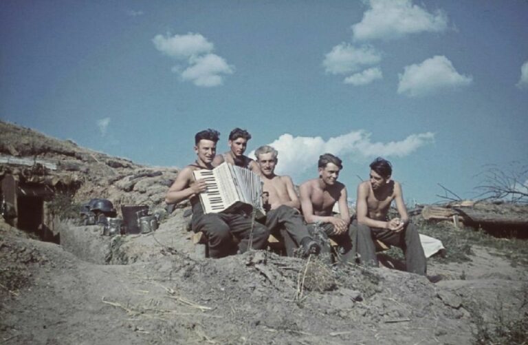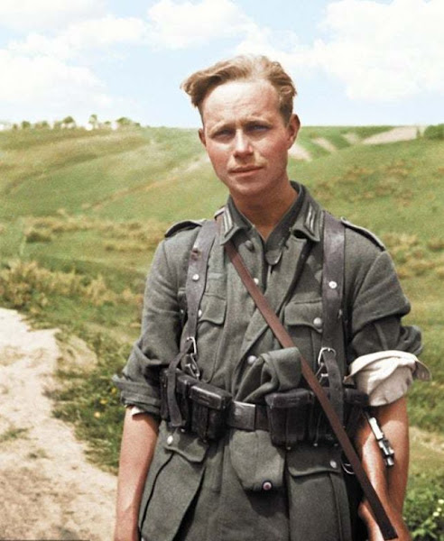 • WWII in Color / Reddit r/wwiipics : Photos couleur : soldats Wehrmacht Ukraine 1943 – Enfant russe Belgorod, tombes Ivanovka – Autoportraits + officiers Koursk