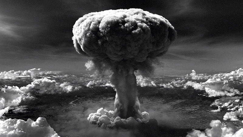 Développée par les États-Unis lors du conflit, la bombe atomique est utilisée pour la première fois de l’Histoire : deux bombes A larguées sur des cibles civiles par les États-Unis explosent à trois jours d’intervalle, à Hiroshima et à Nagasaki, au Japon.