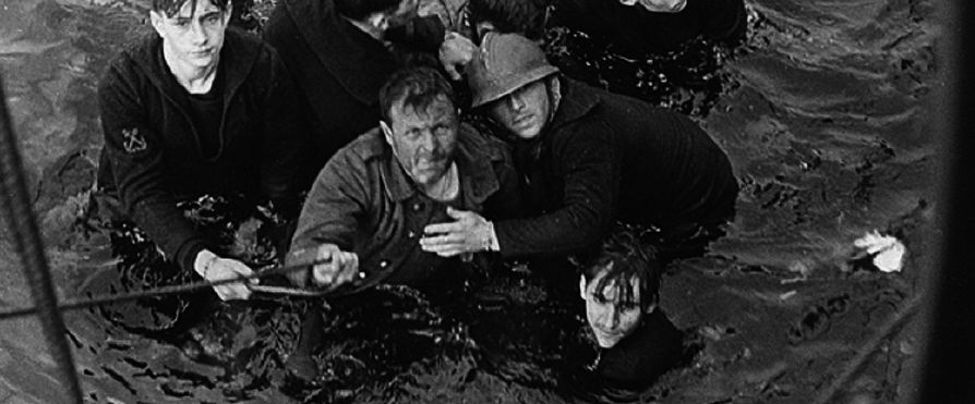 Soldats belges qui capitulent en rejoignant une embarcation allemande