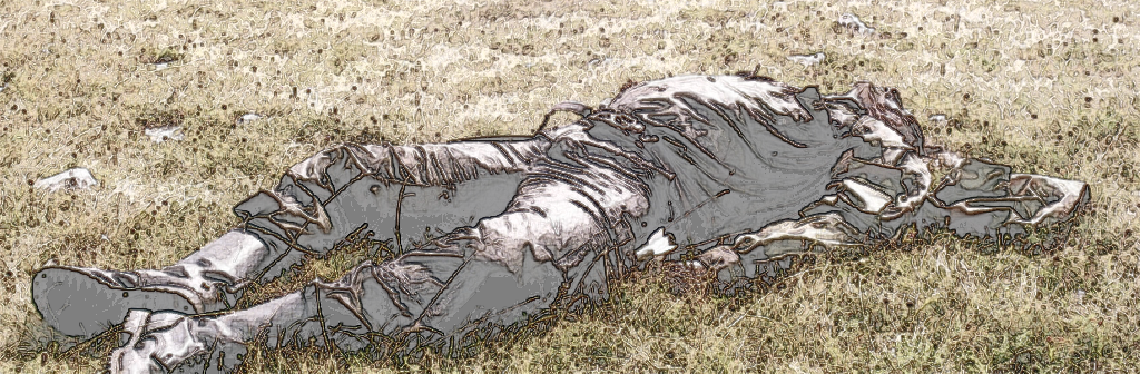 Le corps resta là, étendu entre deux sillons. Le balluchon éventré livrait ses restes au vent : un morceau de pain brisé, une pomme roulant dans la poussière. Les mouches vinrent d’abord en éclaireuses, puis en nuée obstinée. Le vent chaud de mai passa sur lui comme une caresse inutile.