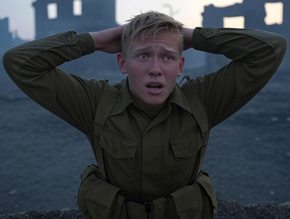 Une ombre surgit au détour du talus — un soldat allemand, grand, moustache raide, uniforme impeccable. Leurs regards se croisèrent, puis l’homme se jeta sur lui.