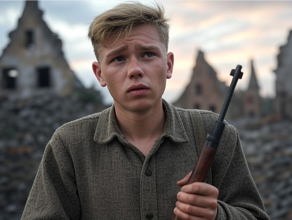 Il ne comprenait plus ce qui tombait autour de lui : poussière, lumière, sang. Son corps refusait de mourir. Le jeune Allemand s’approcha, visage crispé d’un rictus.